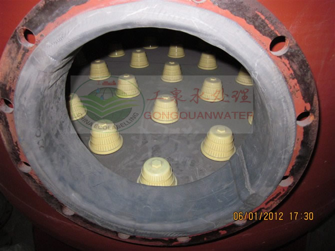 多介質(zhì)過濾器罐體內(nèi)多孔板布水器與襯膠防腐處理: